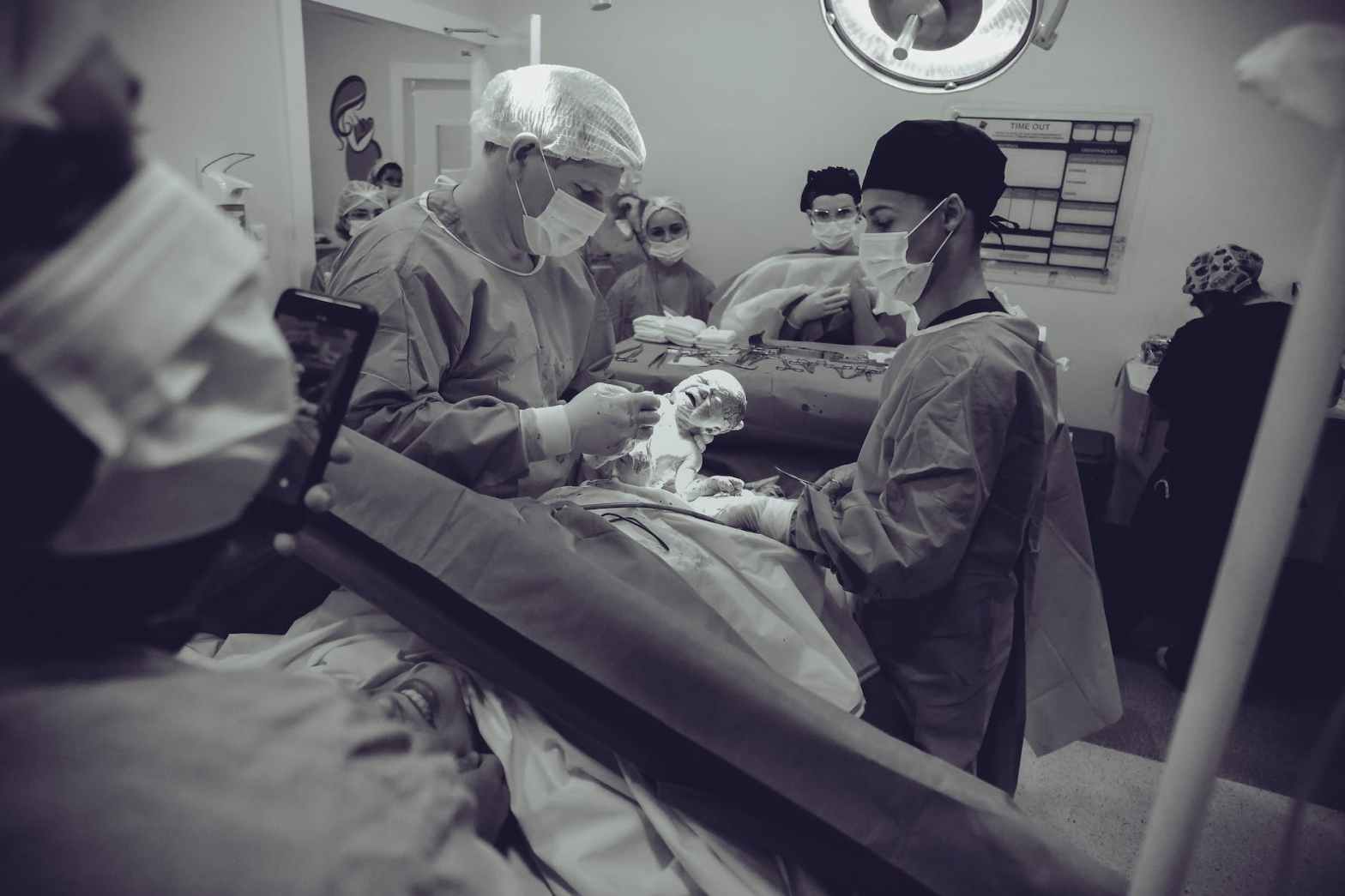 ‘De baby is dusdanig in nood dat hij nu geboren moet worden maar de ontsluiting is nog niet gevorderd, het is nog steeds vier centimeter. Voor een vaginale geboorte is er eigenlijk geen tijd meer. We willen daarom nu een keizersnede gaan doen.’